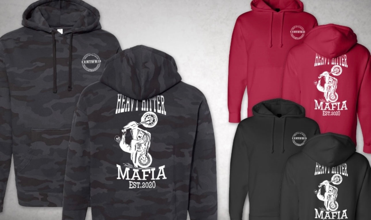 The dyna wheelie hoody will feature the Certified Heavy Hitter stamp on the front left chest and the OG dyna wheelie design on the back.