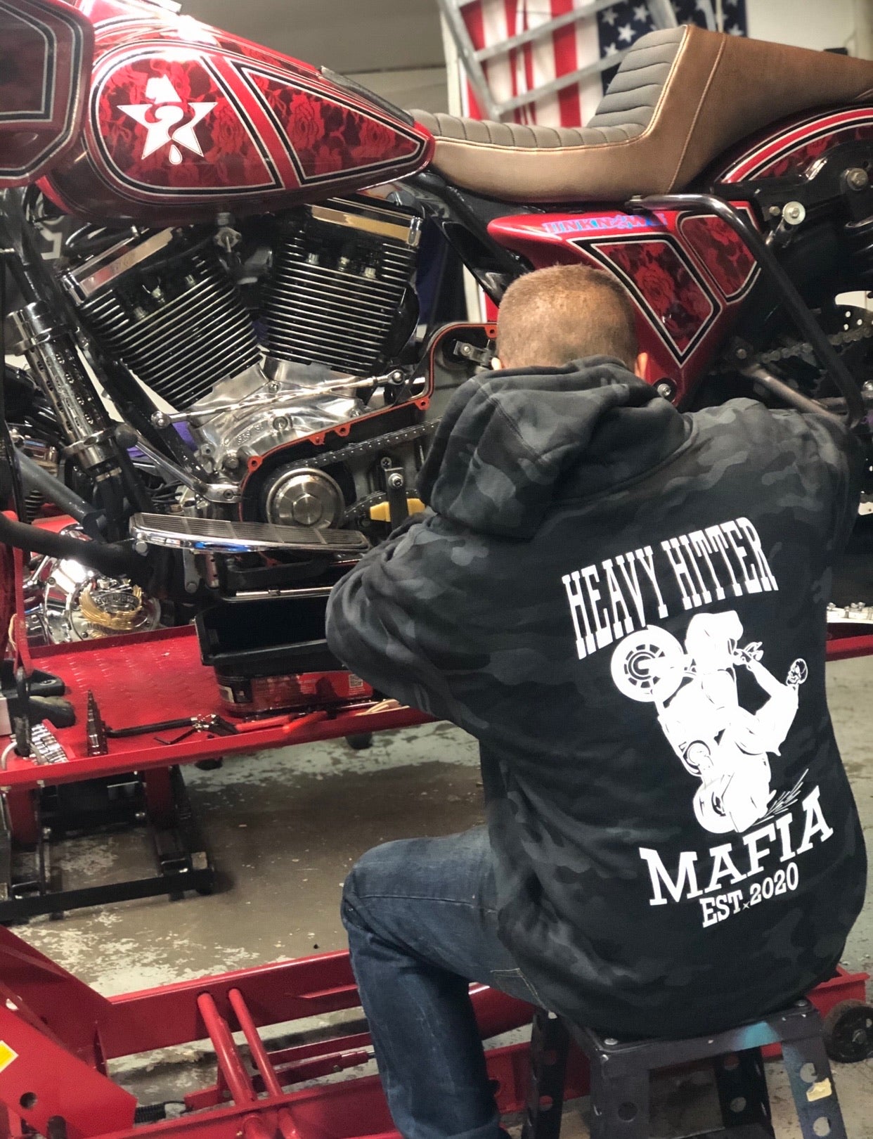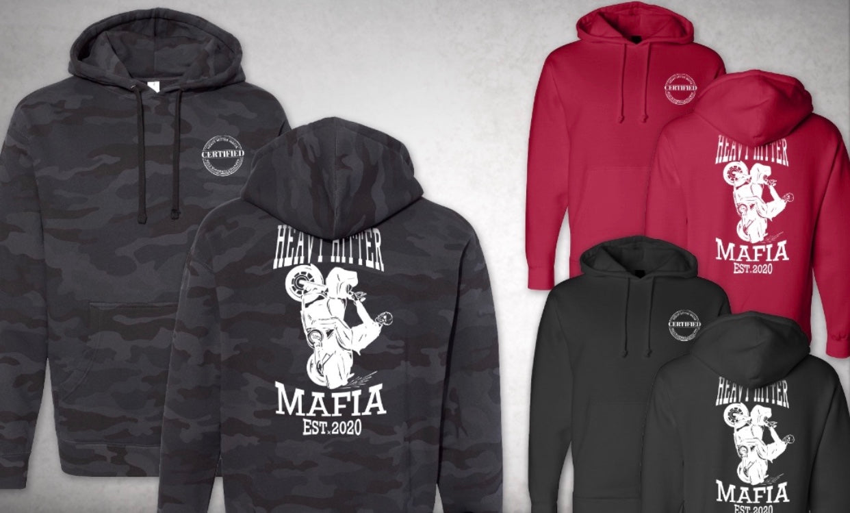 Available in black or black camo. The bagger wheelie hoody will feature the Certified Heavy Hitter stamp on the front left chest and the OG bagger wheelie design on the back.
